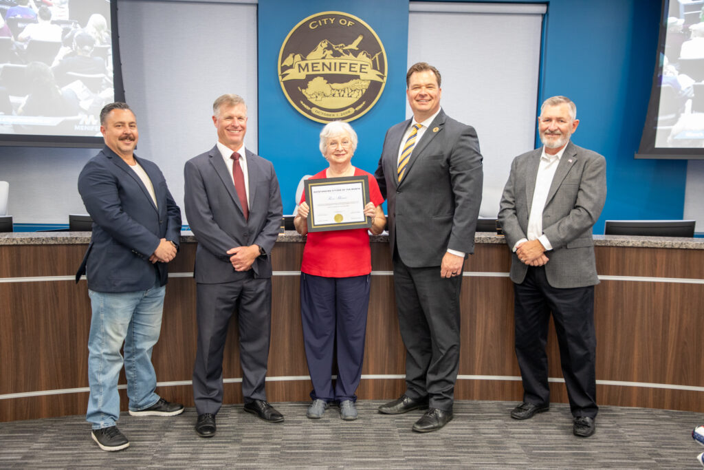 Rose Rhoads, a longtime Menifee resident who has devoted years paying tribute to veterans, was honored by the City Council