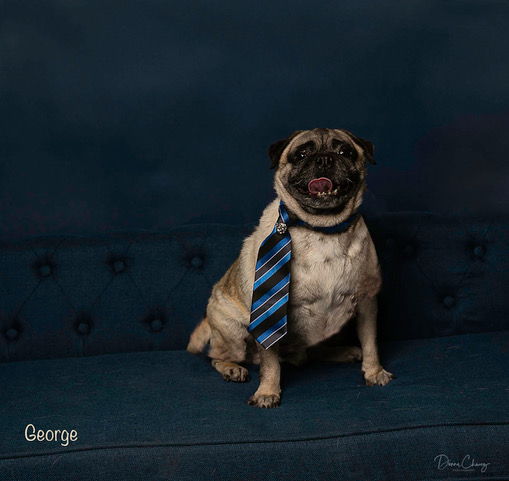 George is an adorable 6-year-old male Pug with charming fawn and black coloring. Weighing in at 19 pounds, he may be small, but he has a huge heart.