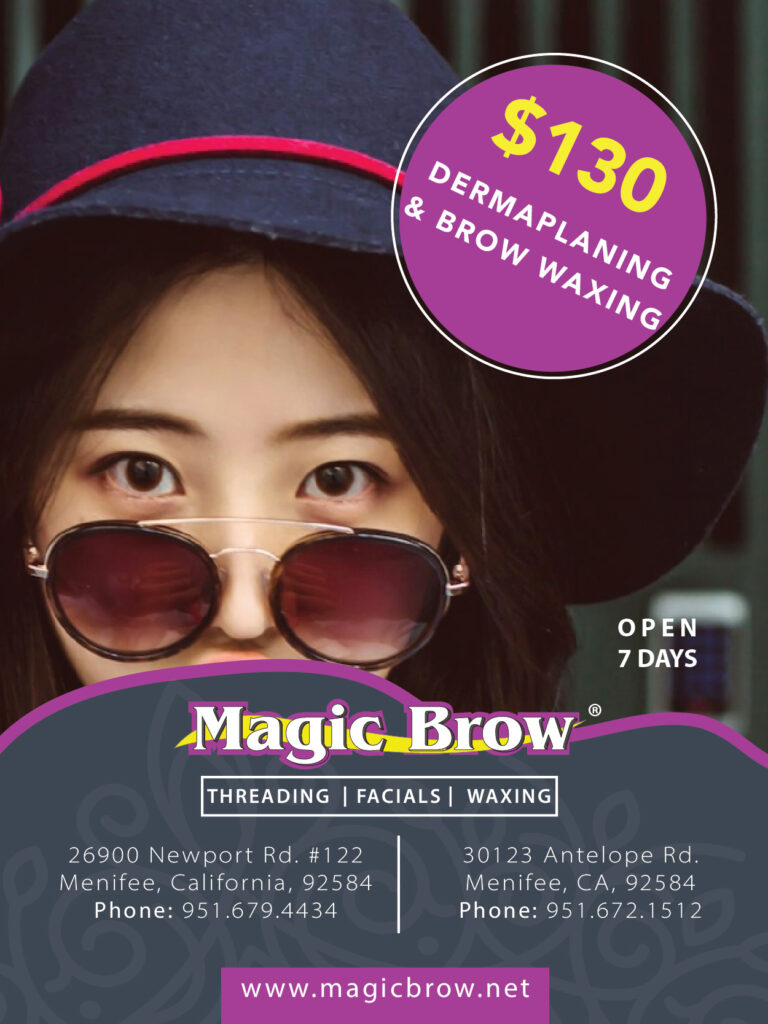 Sponsored post: Magic Brow Menifee now offers dermaplaning AND brow waxing for $130. Contact them today to make an appointment.