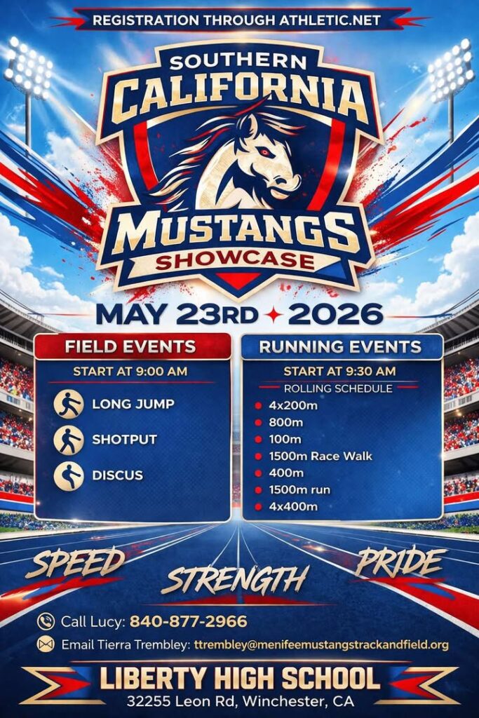 The Southern California Mustangs youth track and field program will host a track meet May 23 at Liberty High School. […]
