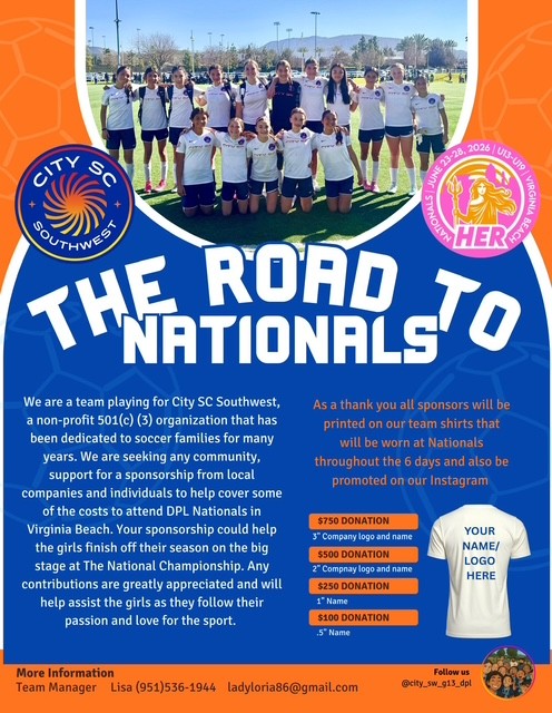 A Menifee-based girls soccer team is heading to the national stage. The City SC Southwest 2013 Development Player League (DPL) team has qualified for the DPL National Finals in Virginia Beach this June.