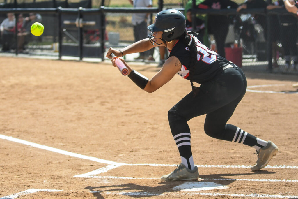 Makayla Frye squares up to bunt. (Photo by Action Captures Media)