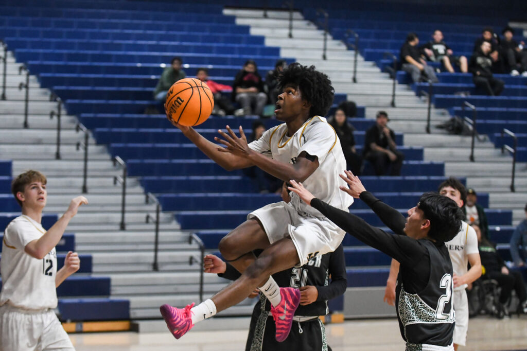 Mycah Mason leads in the key on his way to two points. (Photo by Action Captures Media) Contributed content: Mycah