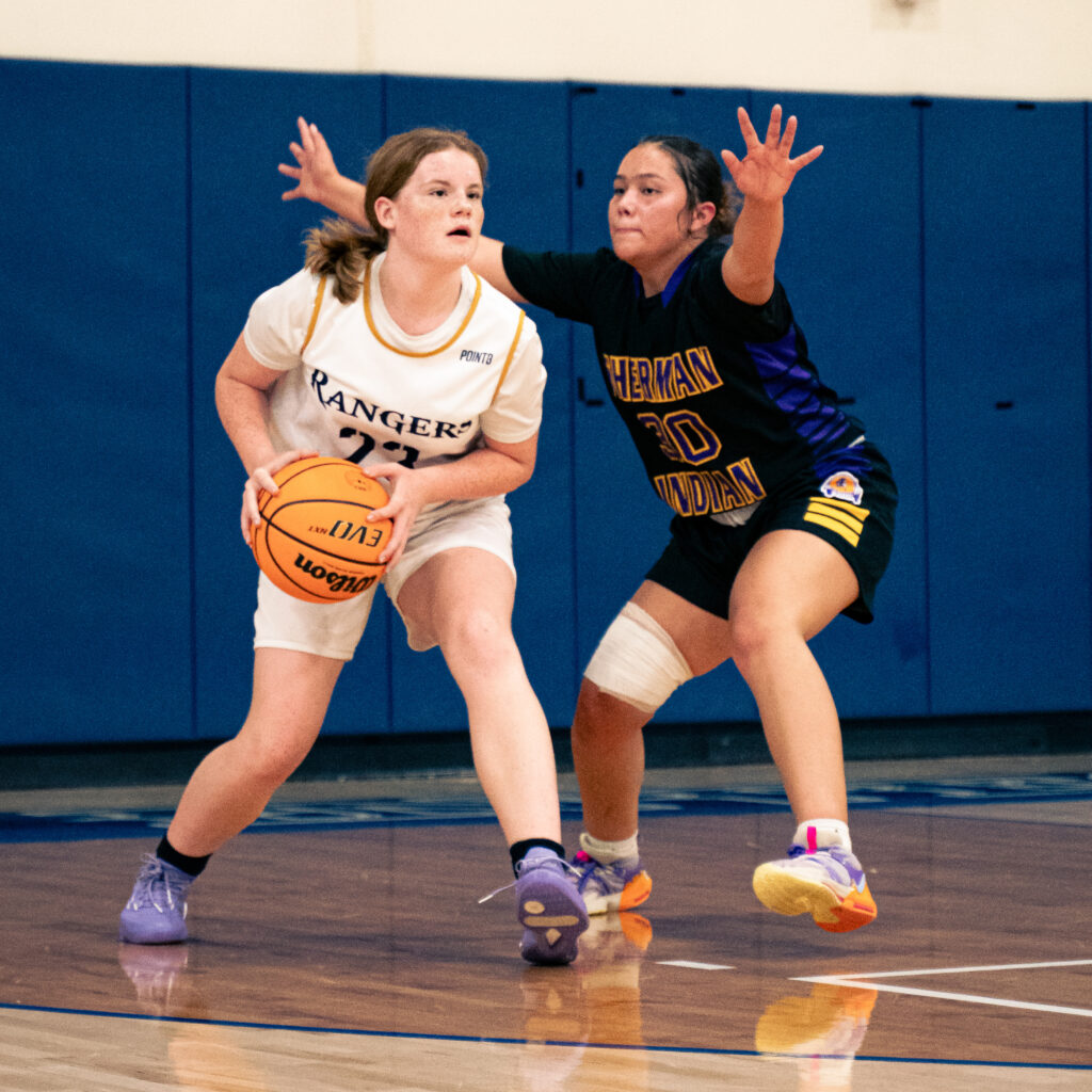 Reese Stump looks to pass to a teammate Tuesday night. (Photo by Reece Kimes) By Parker Costin, Correspondent The Santa