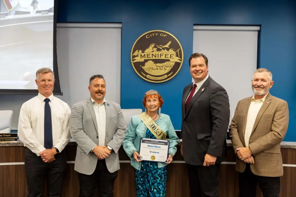 Longtime Menifee resident Mickie Warner was honored by the Menifee Council this week for her 100th birthday, which took place