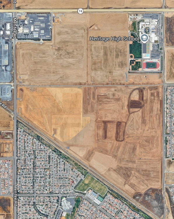 Map shows the large project site south of Highway 74 near Heritage High School. (Google Maps) Changes are underway that will eventually fill 590 acres